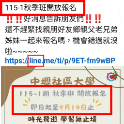 2.中壢社大官網不是臉書也不是LINE,與圖片不符