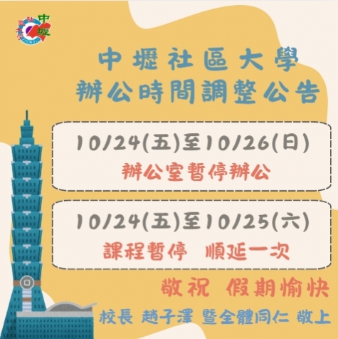 2025/10/20辦公室辦公時間調整公告(10/24-10/26)